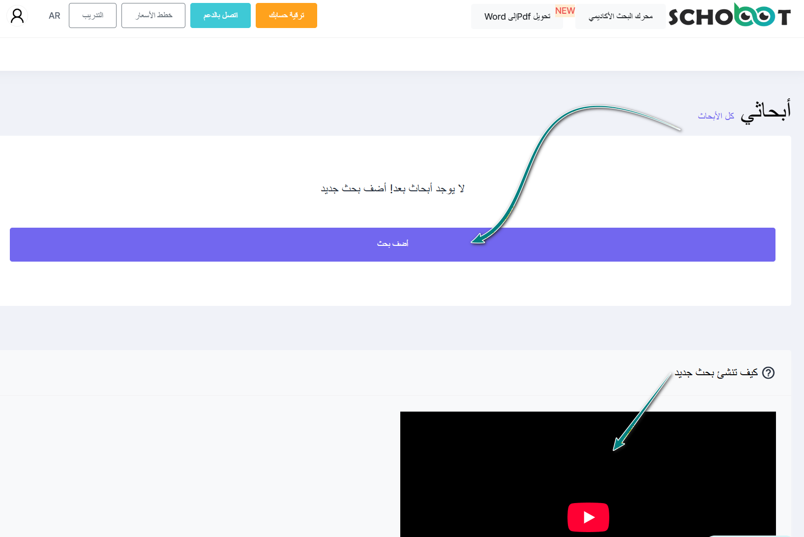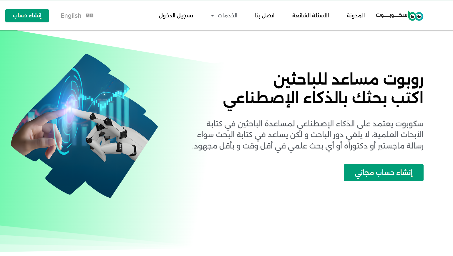 الوصول: يوفر إنشاء حساب مجاني، ويساعد في كتابة أي بحث علمي (ماجستير، دكتوراه، إلخ).