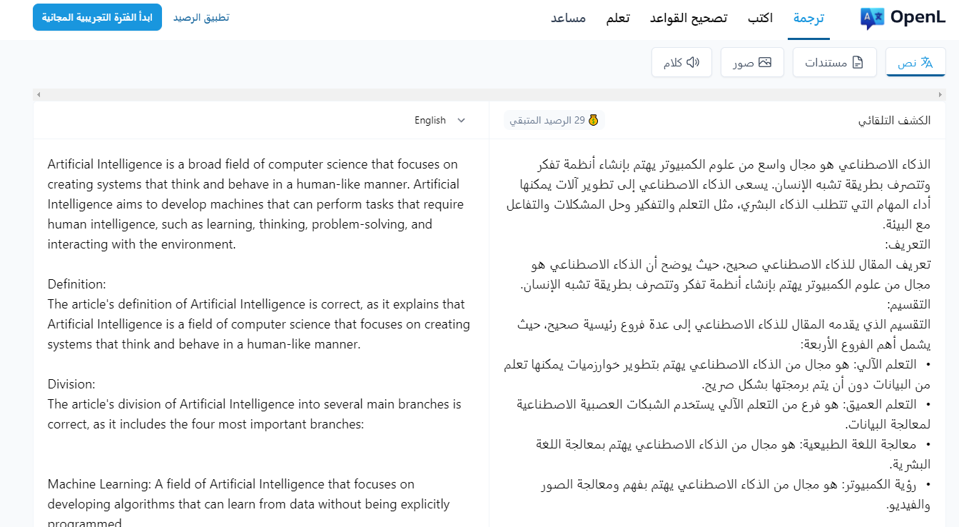 OpenL بالذكاء الإصطناعي - ترجمة دقيقة جدا - أدق من ترجمة جوجل