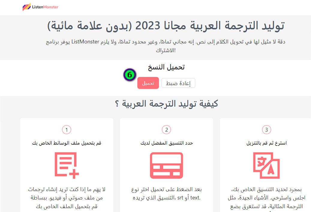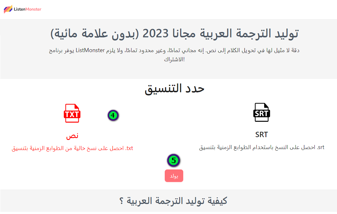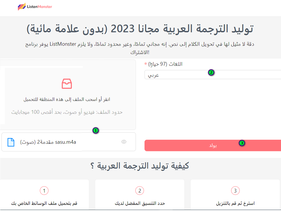 ListenMonster تحويل الصوت إلى نص : توليد الترجمة العربية مجانا 2023 (بدون علامة مائية)