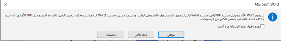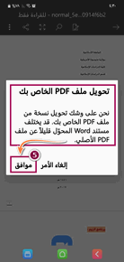(4) تأتيك رسالة كما في الصورة مفادها أنه سيتم تحويل ملف PDF إلى ملف نصي وورد .